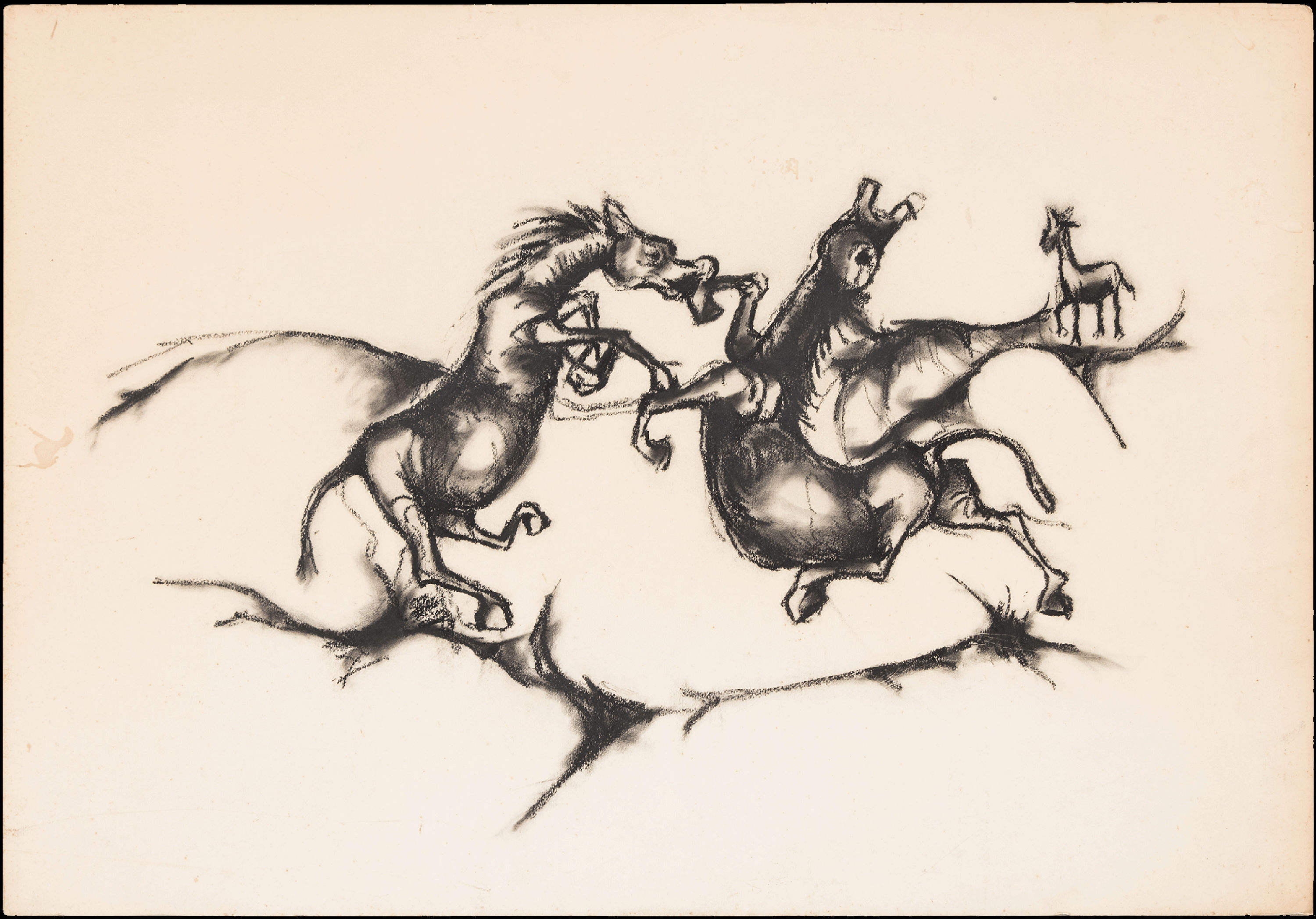 There is, however, also a ludic playfulness in many of Dumile’s early works that was part of the almost tireless energy of which many of his friends and acquaintances talk. Time (The Year) (1967) and Feud (1966/7) foreshadow work such as Kentridge’s Nose on Rearing Horse II (2007). However, what is, in historical terms, of equal significance is Dumile’s unflinching representation of apartheid South Africa and his vision of apartheid-era dystopia.